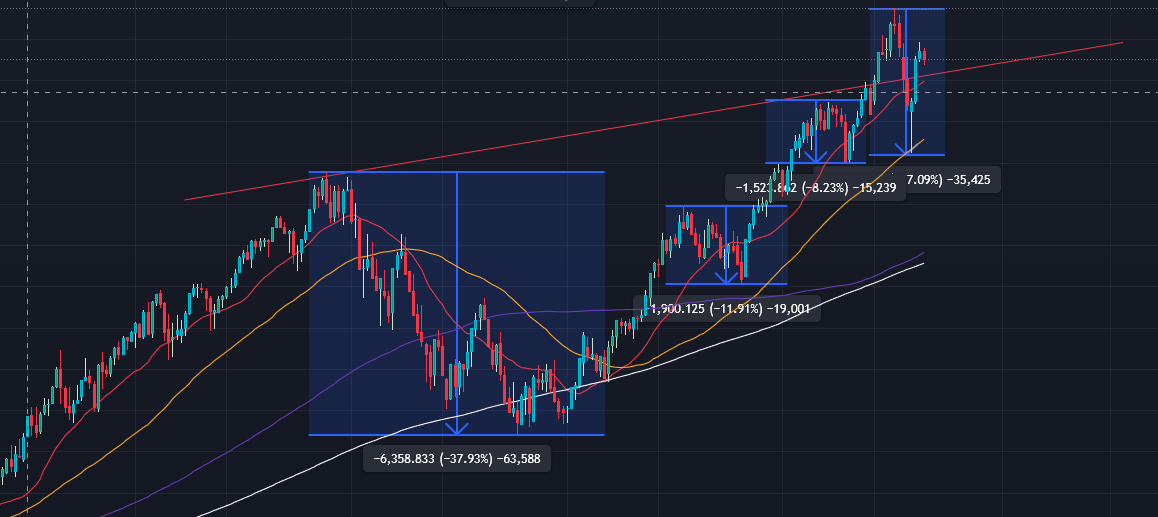 근데 내가 하고 싶은 말은 나스닥도 최소 -8% 최대 - 40% 정도 조정을 받는데 비트코인이 -5% -6% 빠진다고 패닉을 느끼면 안된다는 것.