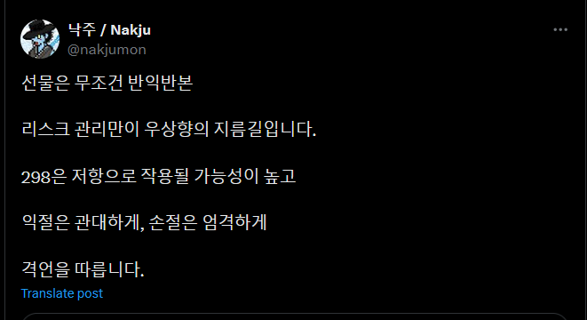 1. 추세를 생각해보고 추세 반대 포지션은 익절 구간을 줄 때 제때 제때 리스크 관리를 한다