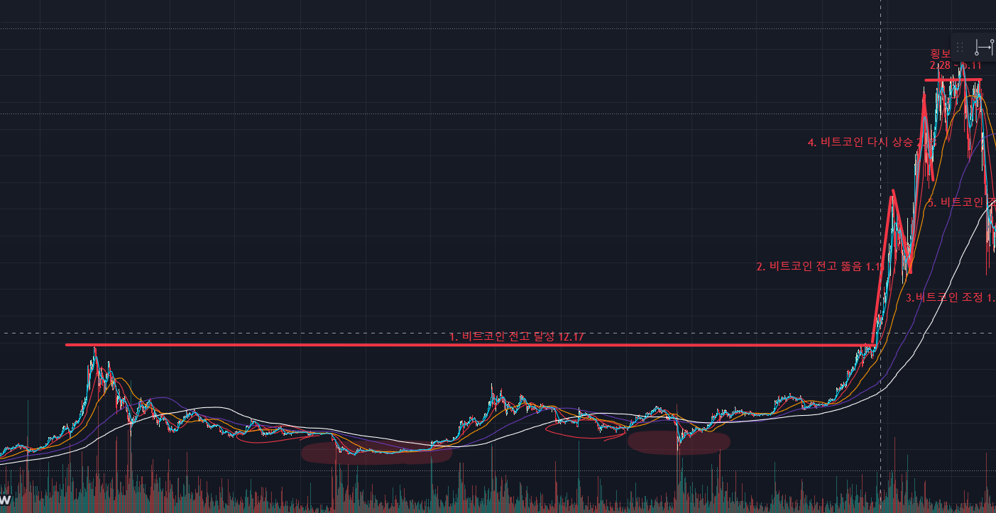 4. 비트코인이 다시 한번 날아감 -> 이때 알트 전고 뚫음